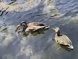 As the boat approached the shore, I spotted several adorable wild ducks leisurely swimming in the water. They glided freely across the sunlit lake, adding a lively and playful charm to the journey.