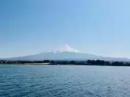 I boarded the sightseeing boat, which slowly departed from the shore. On a clear and sunny day, Mount Fuji stood vividly before my eyes. Its snow-capped peak appeared particularly solemn and sacred against the azure sky, and its perfectly symmetrical silhouette created a breathtaking reflection on the lake's surface.