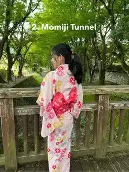 This tunnel of maple trees along the canal is very atmospheric. Unfortunately, when we went, the leaves hadn't turned red yet. I recommend renting a yukata from Thailand to take photos, as it offers a different atmosphere than at the temple. There are hardly any rental shops in the area, but the weather can be a bit chilly.