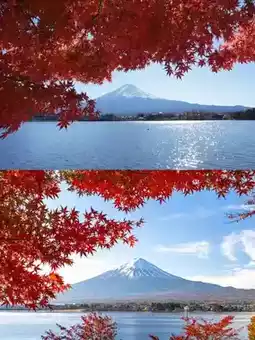 • Maple trees form a natural arch, perfect for photos of "Mount Fuji reflection + autumn leaves"
