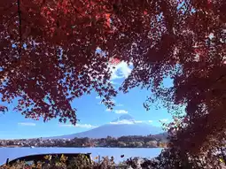 This is the all-time favorite spot to view Mount Fuji! The reflection of the mountain on the lake's surface is especially clear in the morning or late afternoon 🌅. During the autumn leaves season (late Oct. – early Nov.), you can see Mount Fuji as the backdrop to vibrant red maple trees 🌾🍁.