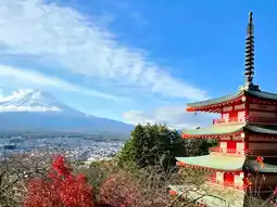 One of Japan's iconic postcard views! The red five-story pagoda with Mount Fuji and red autumn leaves in the background creates a breathtaking scene 🍁. You’ll need to climb about 400 steps, but the view at the top is worth every step 🌸.
