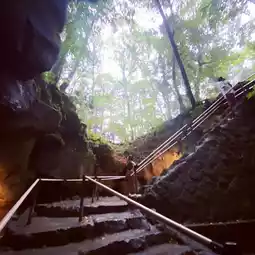 Fugaku Wind Cave is surrounded by the lush greenery of the Aokigahara Jukai forest. Inside, it is cool and refreshing even in summer, with an average temperature of 3 degrees.