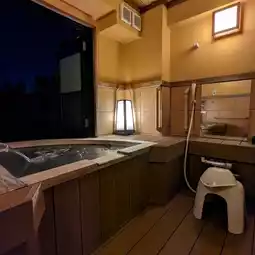 The bathroom is a private hot spring also facing Mt
