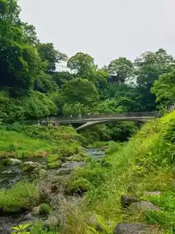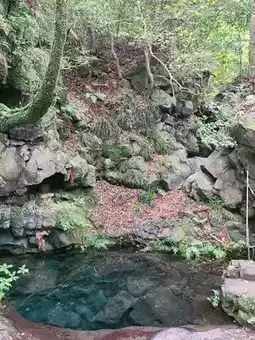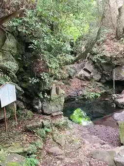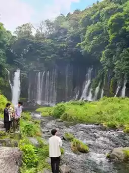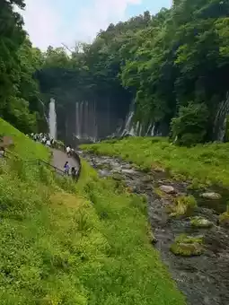 At the top of Shiraito Falls, there is a very beautiful spring water source with Obinmizu!