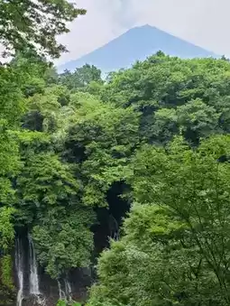 From the observation deck from above, you can see Shiraito Falls with Mt. Fuji in the background, which is a great sight.