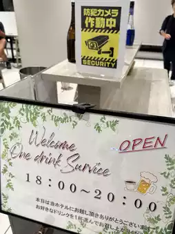 This time, we took the JR line from Tokyo to the Fujiomiya area and stayed at the Kuretake Fujiomiya Grand Hotel! The price for two people is $450 per night, which is quite cost-effective. The hotel offers a free welcome drink, which guests can enjoy upon arrival. There are also alcoholic beverages available for guests to mix their own drinks!