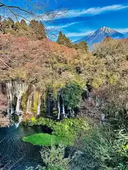 ㊙️There are two observation spaces where you can see this spectacular view from different angles, so I'll introduce them to you. 1️⃣It is located just before the stairs after walking down the street of shops from the parking lot. 2️⃣There is a staircase leading up the cliff at the top of the left bank of the waterfall, and there is a guide to go down to the basin, but it is located at the top of the cliff, and you can see Mt. Fuji along with the waterfall, which is a spectacular view.