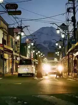 Walking down the street, I looked up and saw Mount Fuji looming between the power lines and streetlights.
