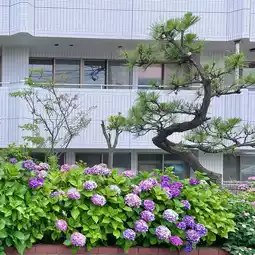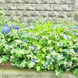 The road is prone to traffic jams, but the large hydrangeas make it more peaceful.