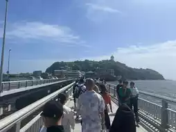 Enoshima is a small island located near Kamakura. After exiting the station, keep walking and you will cross a bridge. Looking over, you will see a very distinctive street. There are beautiful scenery on the side. When the weather is good, you can also see Mount Fuji. It is a very popular tourist destination. Here you can see the lighthouse, and there are super large octopus pancakes 🐙 to eat. There is also a well-known must-eat dish here, which is the fish rice bowl. However, this time it was the Golden Week, so there were really a lot of people and I almost couldn't squeeze in. It is recommended to avoid holidays if you want to come. #Kamakura #Good place for parents and children #Japan