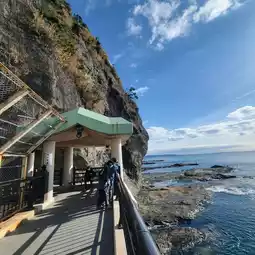 It's two stops from Kamakurakokomae Station, and from there, it's a little over a kilometer walk to Enoshima Shrine and the observation deck.