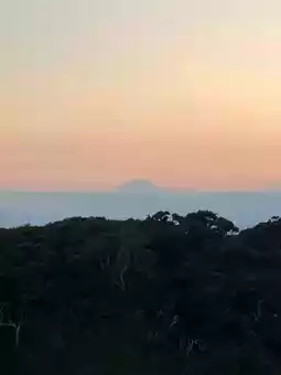 At the end of the walk, we saw a very large red torii gate, which is the entrance to Eshima Shrine. Walking along the stairs all the way up, we could see the sunset at almost the same time, which was super beautiful.