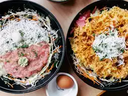 Both meals are big portions, so I don’t recommend the tempura, it’s too much and too dry, but the seafood bowl is pretty good👍, with tuna belly puree, which adds flavor to the tasteless white rice and fish😀.