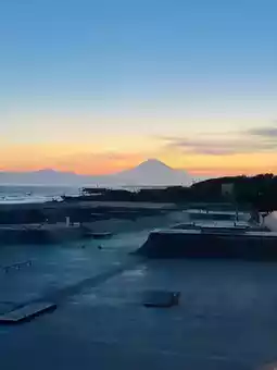 From inside the restaurant, you can relax while enjoying beautiful views of the ocean, Mt. Fuji, and sunsets!