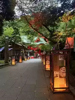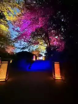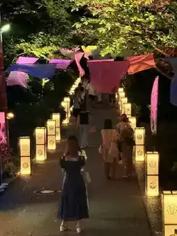 As you enter Enoshima Shrine, you can't help but smile. The stairs and pathways are adorned with lanterns, complemented by colorful silk fabrics and tree light projections, making it feel like you're stepping into a divine realm.