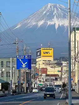 Standing at the front door of the convenience store 🏪, you can see the complete top of Mount Fuji, just like the cheese foam on top of a fruit tea.
