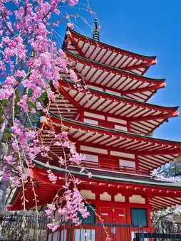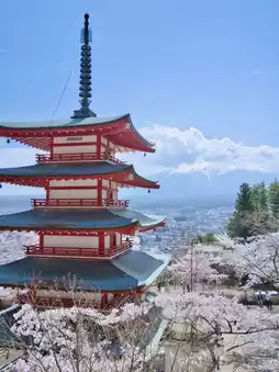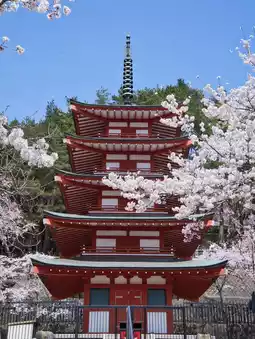In spring, you can see cherry blossoms, Mt. Fuji, and the five-story pagoda all in one view, making this spot highly praised by visitors from overseas as a truly Japanese experience! ️
