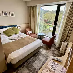 HOTEL MYSTAYS Fuji Onsen Resort is a modern & comfortable resort hotel located near Mount Fuji in Fujiyoshida, Yamanashi, Japan. It's known for its relaxing onsen facilities & the picturesque views of the surrounding landscape.