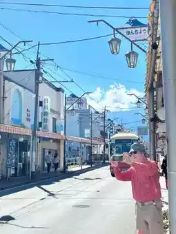 You can see the big Mount Fuji🗻 and the Japanese street scene