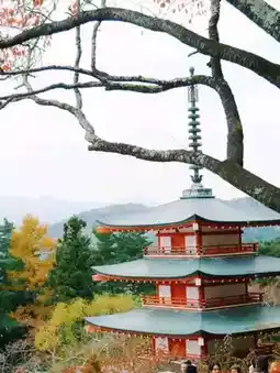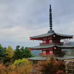 Red Pagoda, a popular location for viewing Mt. Fuji ⛩️