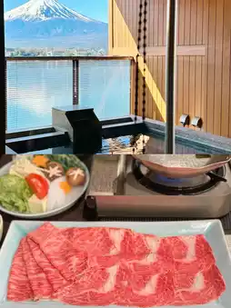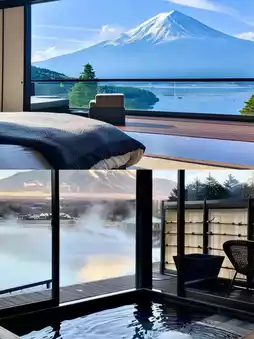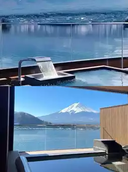 This hot spring ♨️ hotel is mainly Japanese style, combining traditional and modern design. It faces Mount Fuji and is next to the beautiful Lake Kawaguchi. Every corner of the hotel, whether it is the room, restaurant🍴 or public area, has a magnificent view of Mount Fuji. Some rooms also have beautiful views of the surrounding gardens, allowing you to enjoy a 360-degree view of Mount Fuji while lying in bed.