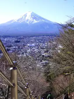 ▶️From the observation deck, you can see the Fujiyoshida cityscape below, and beyond that, the beautiful view of Mt. Fuji spread out symmetrically.
