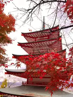There is an observation deck, so if the weather is good, you can see Mt. Fuji over the five-story pagoda🙌🏻💓This time, the top of Mt. Fuji was not visible, so we only saw the base, but it was still spectacular·͜·✌︎´-The stairs are long, but the autumn leaves are so beautiful that we managed to climb all the way to the top✨
