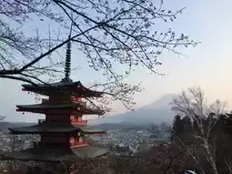Contrasting with the red pagoda and with the majestic Mt. Fuji as a backdrop, the atmosphere is great. It might be a bit tiring to walk up.