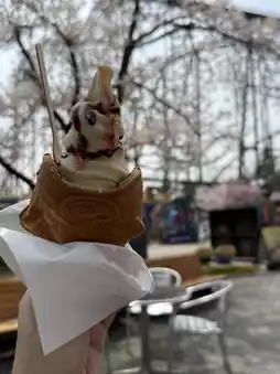 I went in April and saw a lot of cherry blossoms in the park, and you can see Mount Fuji in the distance. Even if you don't like to play rides, it's a good choice to walk around the park, and the transportation is very convenient, just take one stop from Kawaguchiko Station!