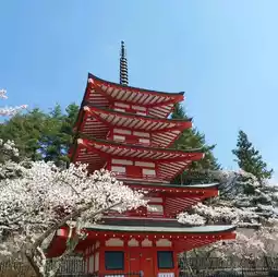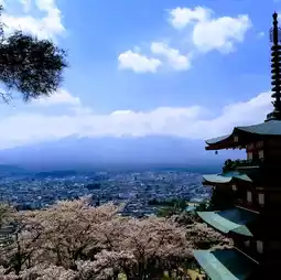 This is the best place to take photos of Japan's three major views: Mount Fuji, the five-story pagoda, and cherry blossoms. However, you have to walk to the observatory, which is very crowded. Finally, I got a good spot and took precious photos. It's a pity that there were a lot of clouds today, which blocked the most perfect visual experience of Mount Fuji.