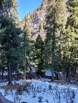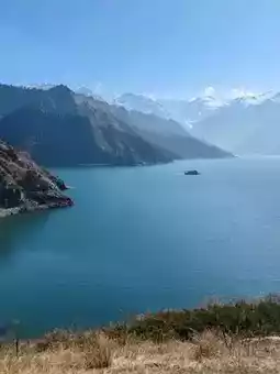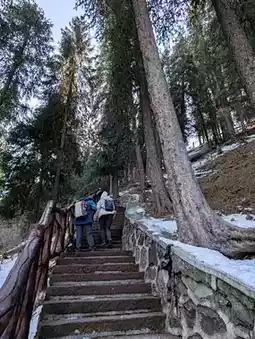 After bidding farewell to Feilong Pond, we made our way along the winding stone steps that cut through a forest of straight pine trees. Sunlight filtered through the towering canopy, casting dappled patterns on the thin layer of snow covering the woodland floor. It was an uphill climb all the way, where the edges of snow and rock outlined the silence and crisp chill of the winter mountains. With each step upward, the anticipation grew for the stunning lakeside view that would soon open up before us.