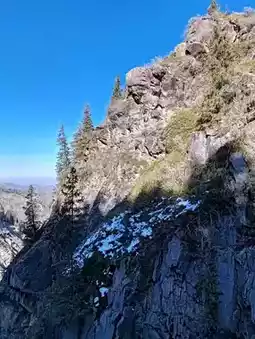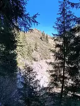 Feilong Pond, originally formed by the overflow of Tianshan Heavenly Lake, was once renowned for its emerald waters and cascading waterfalls. However, under the influence of winter's low temperatures and the dry season, the sight that now meets the eye is strikingly different. The pond has completely dried up, exposing vast stretches of gravel and earth, blanketed by snow, evoking a profound sense of solitude. Just a short distance away, where the "Flying Dragon's Cascade" still roar, but at the pond here,only steep cliffs and surrounding pines remain, silently bearing witness to the shift of seasons and the unpredictability of nature. Beneath the vast blue sky, this valley reveals a different kind of beauty—quiet, solemn, and majestic.