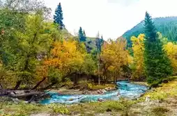 Starting from the terminal station, the wooden trail ascends step by step through a forest of towering spruce, with sunlight piercing through the canopy and casting dappled shadows. On both sides of the path, patches of snow linger among withered grasses, revealing the early arrival of winter. The air is crisp and cool; looking up, you see the clear blue sky, and gazing into the distance, the sapphire-blue lake embraced by majestic snow-capped mountains comes into view. Every step offers a new scene to savor, capturing the pure joy of hiking.