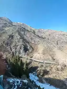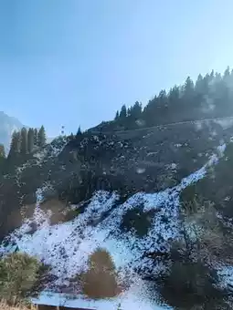 The shuttle bus travels through the mountains, offering soothing views of the late autumn and early winter landscape outside the window. Dry, rolling hills stretch endlessly, with exposed rocks and withered shrubs marking the seasonal transition. The road winds upward through the valleys, where traces of early snow add a touch of crisp chill to the air. A clear river flows through the gorge—sometimes calm as a mirror, reflecting the blue sky and bare trees; sometimes rushing and tumbling over rocks, churning up white foam. In the distance, a structure in antique style stands serene and dignified under the sunlight, adding a human touch to this majestic natural canvas. It was a journey back in harmony with nature.