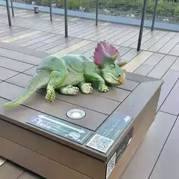 The east exit is home to an 8-meter-long parent Triceratops and its child monument, making it a popular spot for families. There's also a "Dinosaur Playground" scattered with smaller dinosaur monuments like Ankylosaurus and Spinosaurus, where children can touch and take photos.