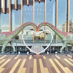 On the rooftop plaza of the Fukui City Tourism Exchange Center, you'll find monuments themed around family love, including a pair of Fukuititan dinosaurs and baby dinosaurs.