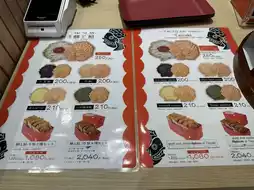 The menu includes "Azuki" and "Shiro" for 200 yen, "Yame Matcha" and "Custard" for 210 yen, and "Mentai" for 250 yen.