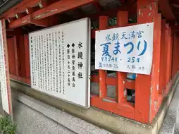 "On his way from Kyoto to Dazaifu, Sugawara no Michizane saw his own reflection in the clear waters of the Yosogawa River, and later built a shrine there, calling it Suikyo Tenjin."