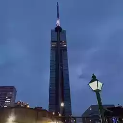Artificial beach in the heart of Fukuoka with 360-degree views of the city
