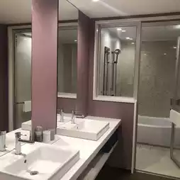 The room is great, with two sinks and a spacious bath!
