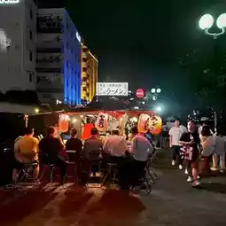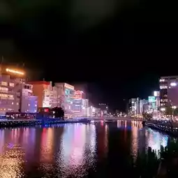 Walk to the Naka River area, which is a popular nightlife area for tourists to walk around and eat at street stalls, or "yatai", which is a rare charm of Fukuoka. Let me tell you that the weather is good, the atmosphere is good, and the view is very beautiful.