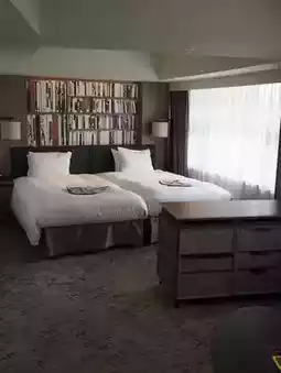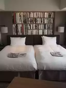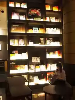The hotel has a book theme, and the front lobby was surrounded by books and was stylish!