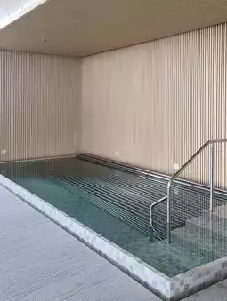 The spa also features a 25-meter indoor pool with views of Hakata Bay, a vitality pool, dry and mist saunas, and a 24-hour fitness center.