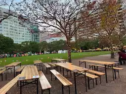It is divided into eastern and western areas connected by the "Koen-dori Bridge" and "Fukuhaku Promenade," so be sure to take a stroll around both!