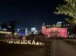 The city letters that spell out "FUKUOKA" are also a great spot for taking commemorative photos. Santa Claus is also included during Christmas.