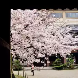 If you travel during the cherry blossom season in Fukuoka, you shouldn't miss Tochoji, which is famous for its beautiful cherry blossoms. It's close to Hakata Station and you can see a very large cherry blossom tree. There are also large buildings and towers inside, so Tochoji Shrine is magnificent and large even when you visit in winter.