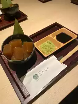 The warabimochi set was made with rare kudzu starch, giving it a chewy texture.