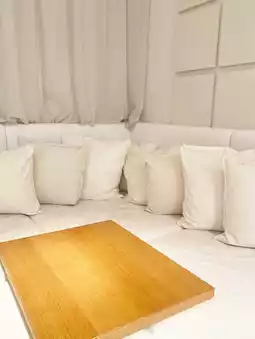 Take off your shoes and go up to the raised seating!! ️