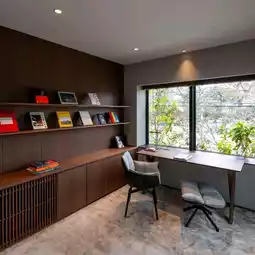 A total of 8 spacious rooms of over 100 m2 in a building with an urban yet lush architecture.